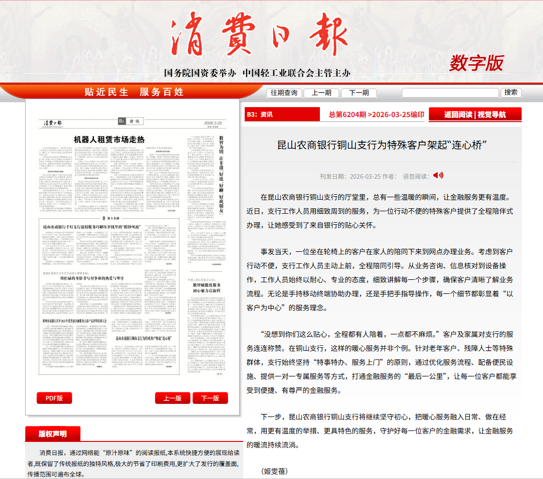 【消费日报】昆山农商银行铜山支行为特殊客户架起“连心桥”